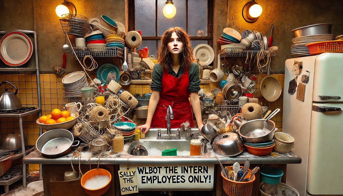 Sally the Intern: (brandishing a wooden spoon like a scepter) “I’ve got this under control, thank you. Just keep yourselves entertained. And no sneaking snacks!”