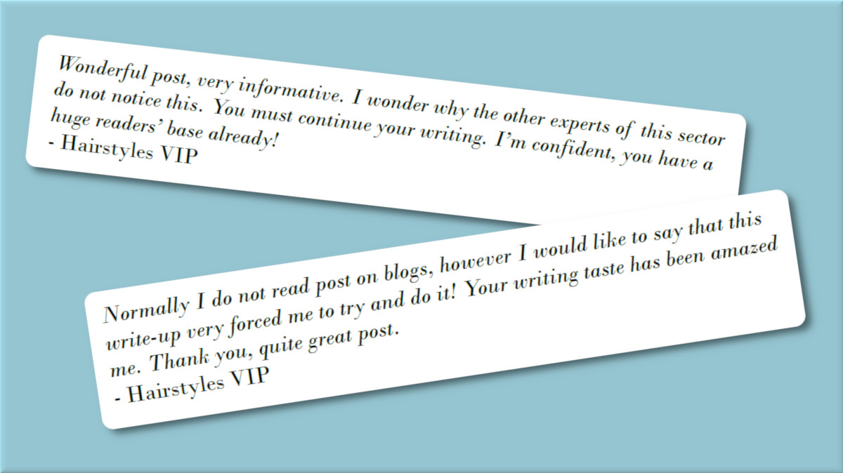 Every day, we get many, many complimentary comments from Haircuts VIP.