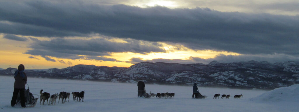 Turns out this is a thing! You can recreate the Sam McGee adventure on frozen Lake LaBerge (minus the cremation, and hopefully minus the death).