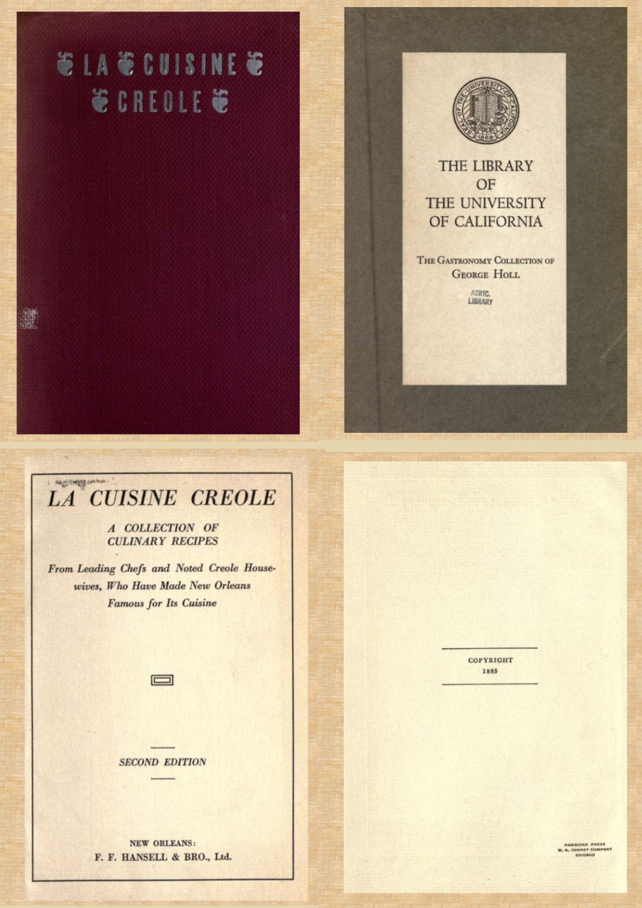 La Cuisine Créole (1885), a collection of culinary recipes from leading chefs and noted Creole housewives who helped make New Orleans famous for its cuisine