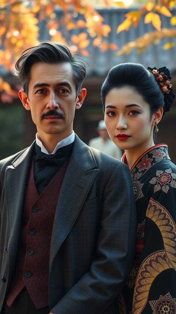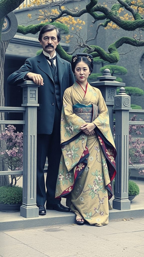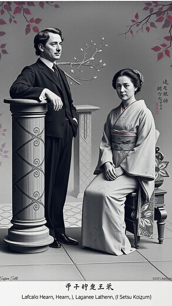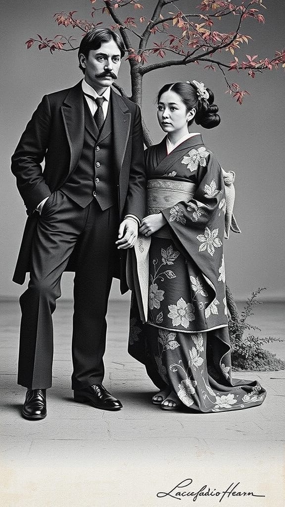 These are AI interpretations of Lafcadio Hearn and his wife Setsu Koizumi, based on this archival photo: