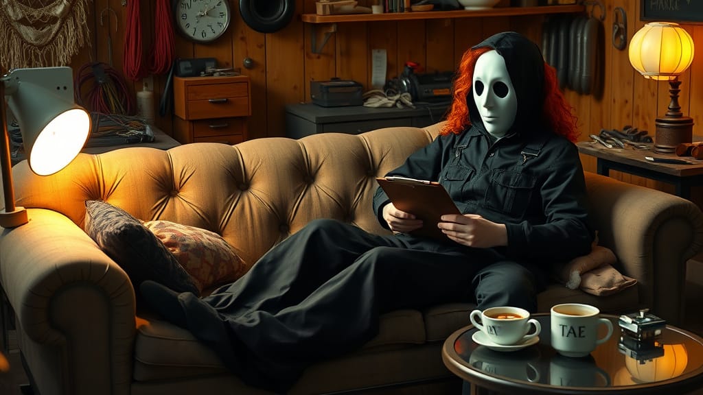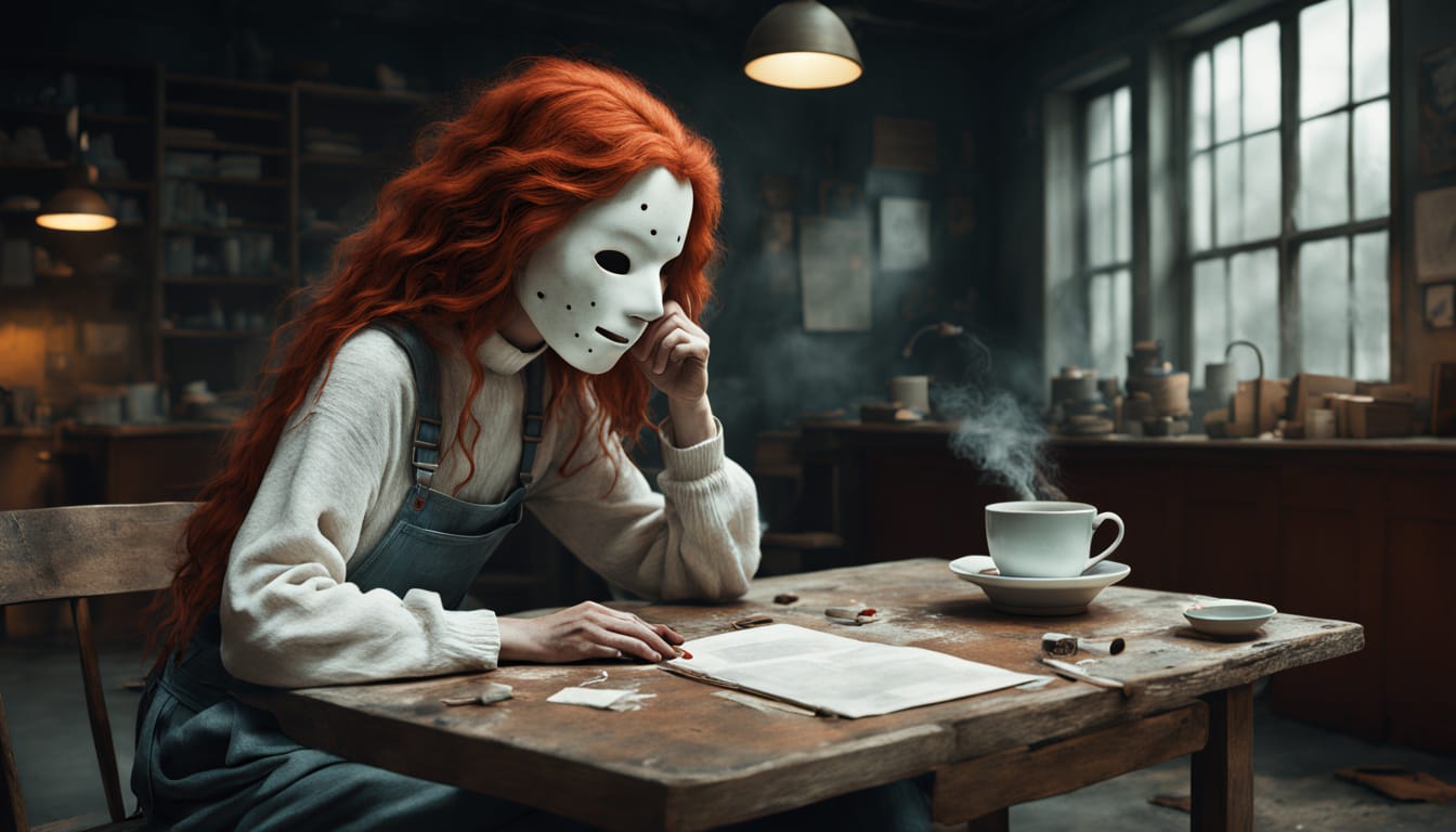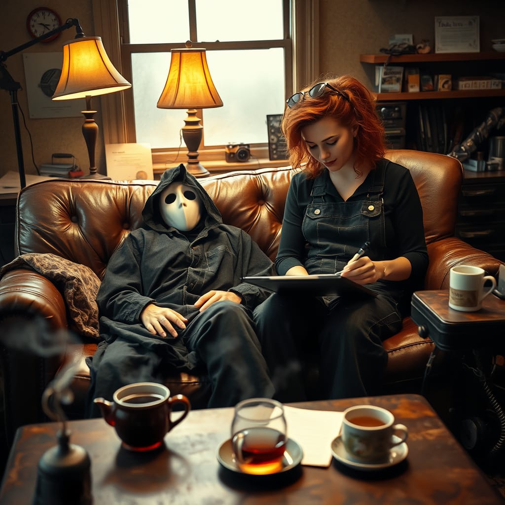 Tess Twinehart (scribbling notes on a twine-wrapped notepad): “Alright, Mr. No-Face, welcome to Tess Talks Twine: A Love Column for the Lovelorn and the Lost. I understand you’re seeking guidance in the realm of personal relationships?”