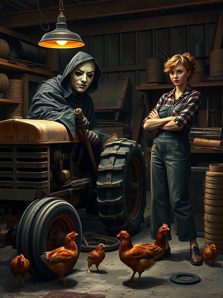 Tess (smiles, taking the flower and wrapping a piece of twine around its stem): “Now that’s a good start. Small, meaningful gestures. But before we go deeper, tell me—how do you feel about tractor repair? Because I see some metaphorical parallels we could explore here.”