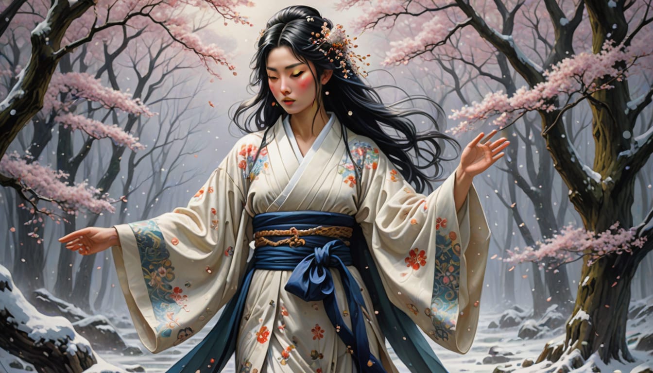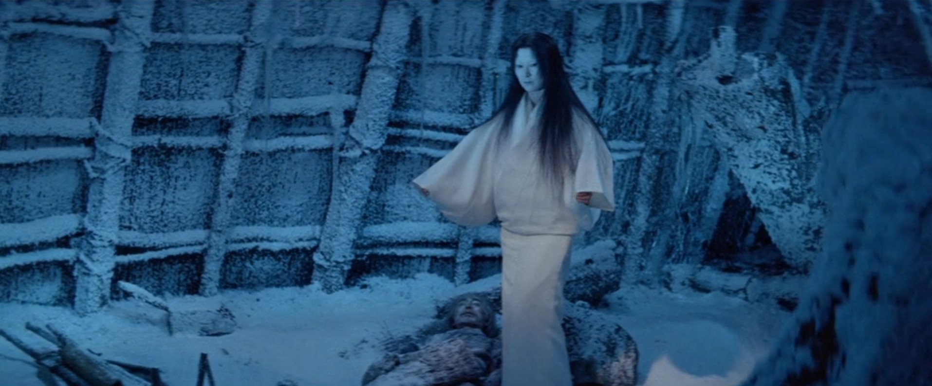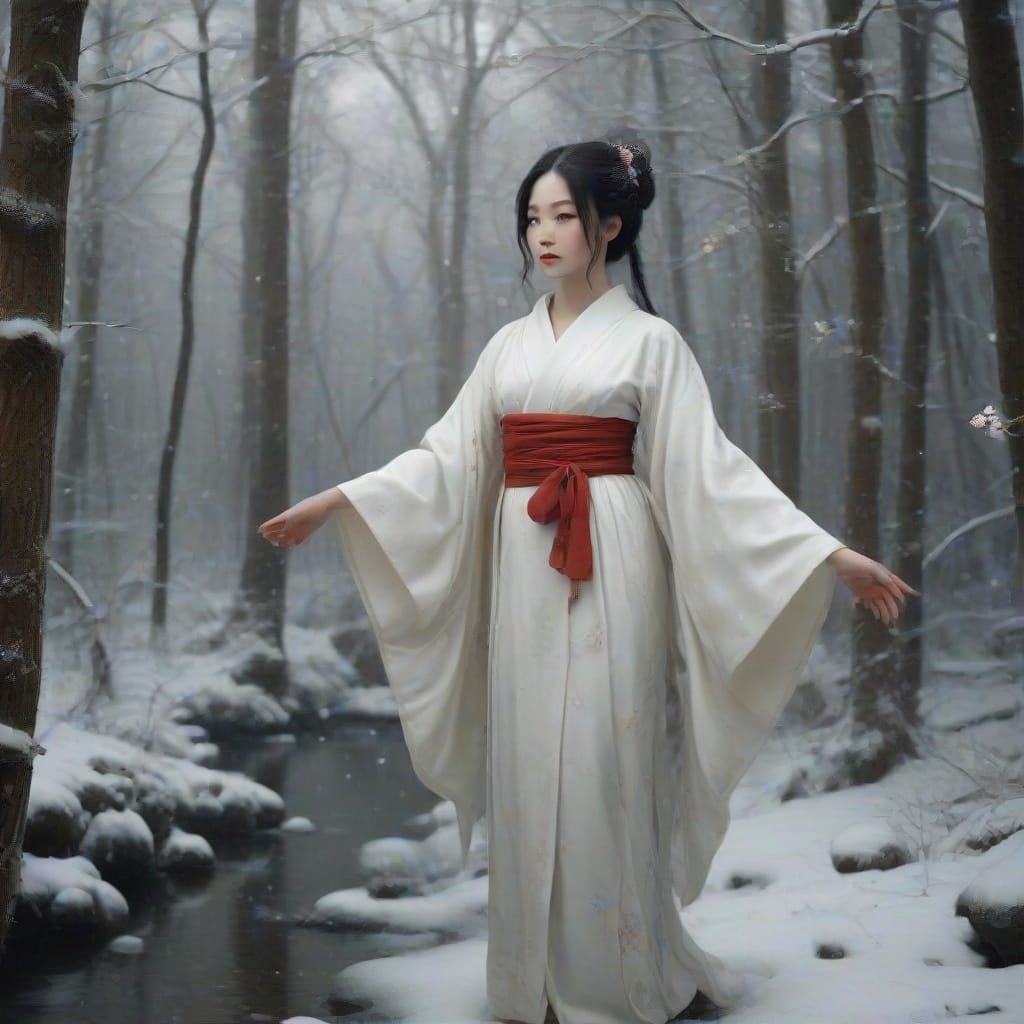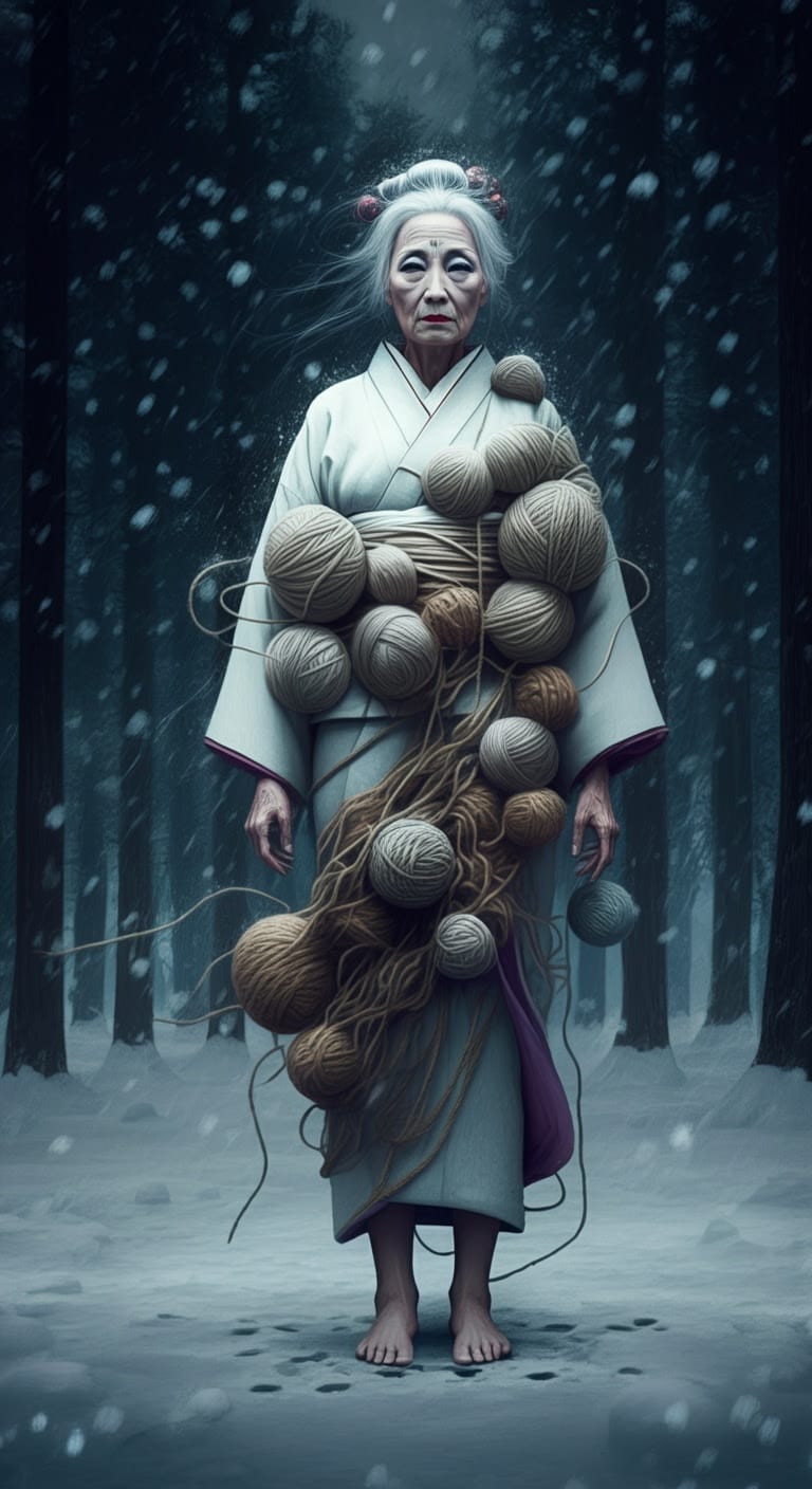 Two woodcutters named Minokichi and Mosaku take refuge in a boatman’s hut during a snowstorm. Mosaku is killed by a yuki-onna. When the yuki-onna turns to Minokichi, she sympathetically remarks that he is a handsome boy and spares him because of his youth, warning him to never mention what happened or she will kill him. Minokichi returns home and never mentions that night.