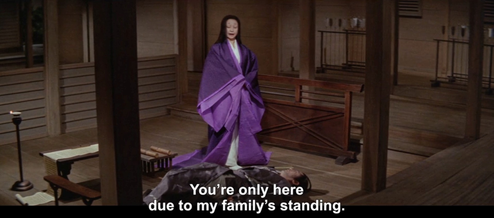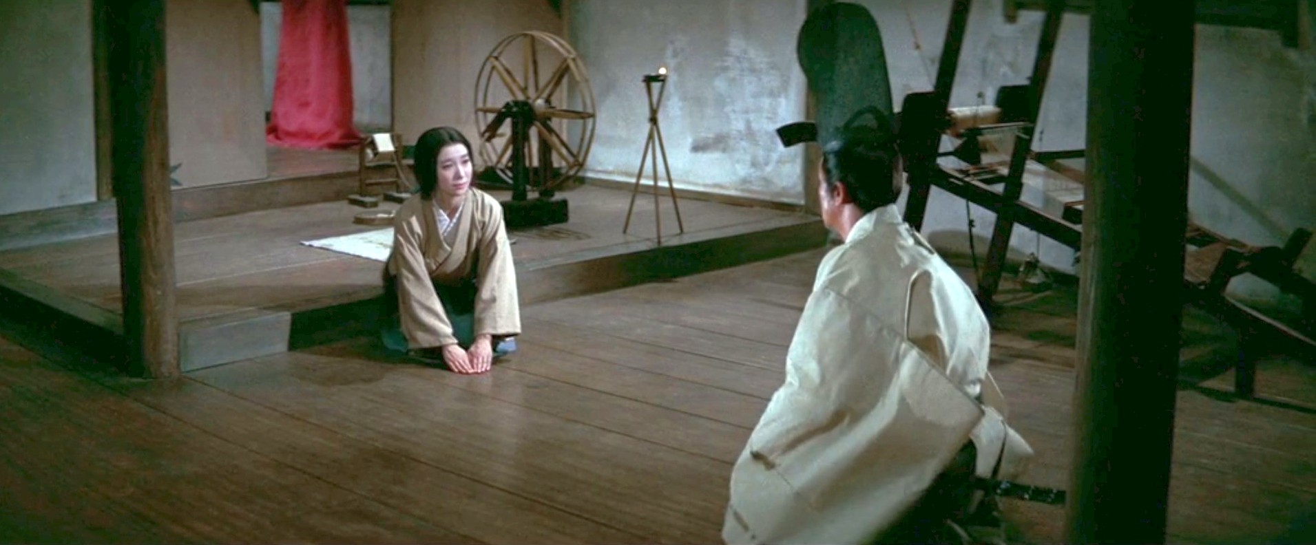 An impoverished swordsman in Kyoto divorces his wife, a weaver, and leaves her for a woman of a wealthy family to attain greater social status. However, despite his new wealthy status, the swordsman’s second marriage proves to be unhappy. His new wife is shown to be callous and selfish. The swordsman regrets leaving his more devoted and patient ex-wife.