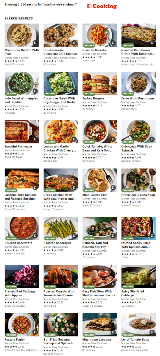 You can see all 1,656 of Martha Rose’ NYT recipes here: