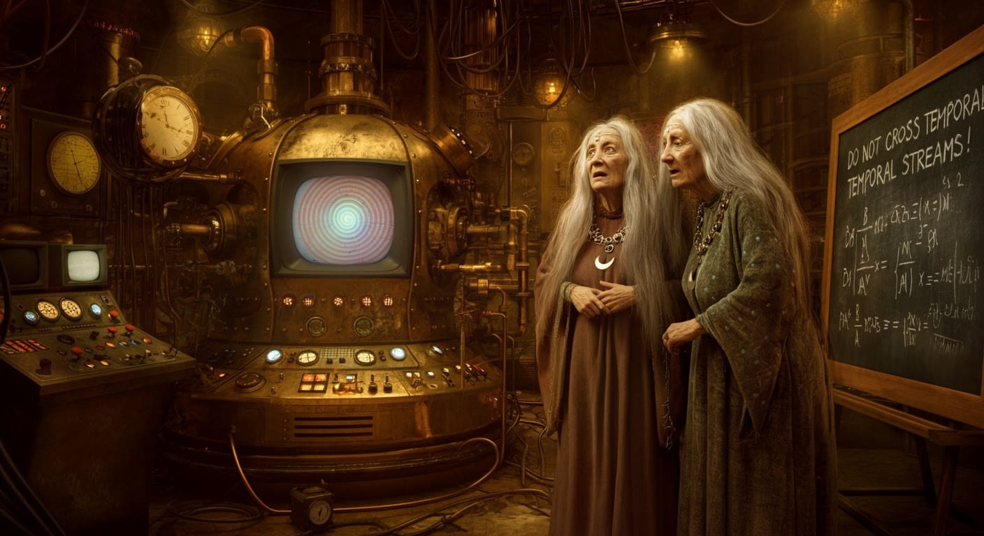 Elder G: Ah, UC#4, if only the WLBOTT Time Machine were fully operational! Unfortunately, it’s currently stuck in a recursive paradox loop, thanks to an ill-advised attempt to retrieve missing episodes of Doctor Who.