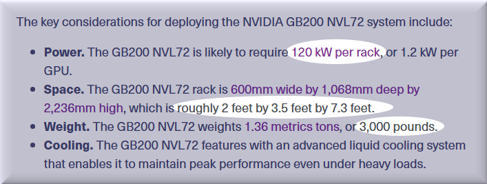 - Microwaves – A typical microwave draws 1 kW while in use. The NVLink 72 uses the same power as 120 microwaves running at full blast.