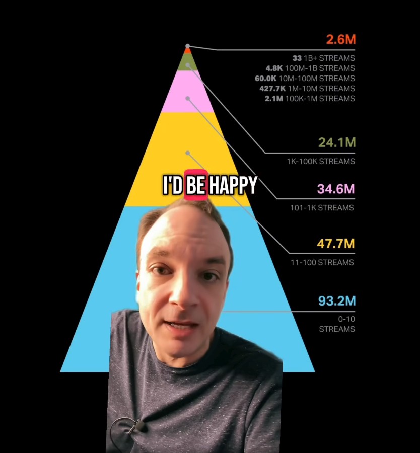 Content creation or art of any kind is a low paying job…. I’m saying factually, statistically, it usually looks like this. This pyramid graph is of all of the songs on Spotify….