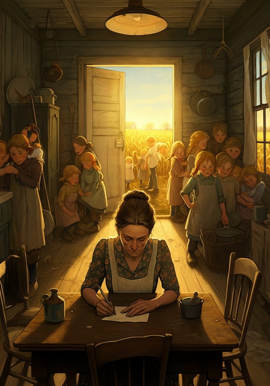 He claims it is vital work, something about “preventing the wrong corn from touching the other corn,” and I respect that. I do. But Tess, we have seventeen children, and I am the only one here keeping the pigs from eating the laundry.