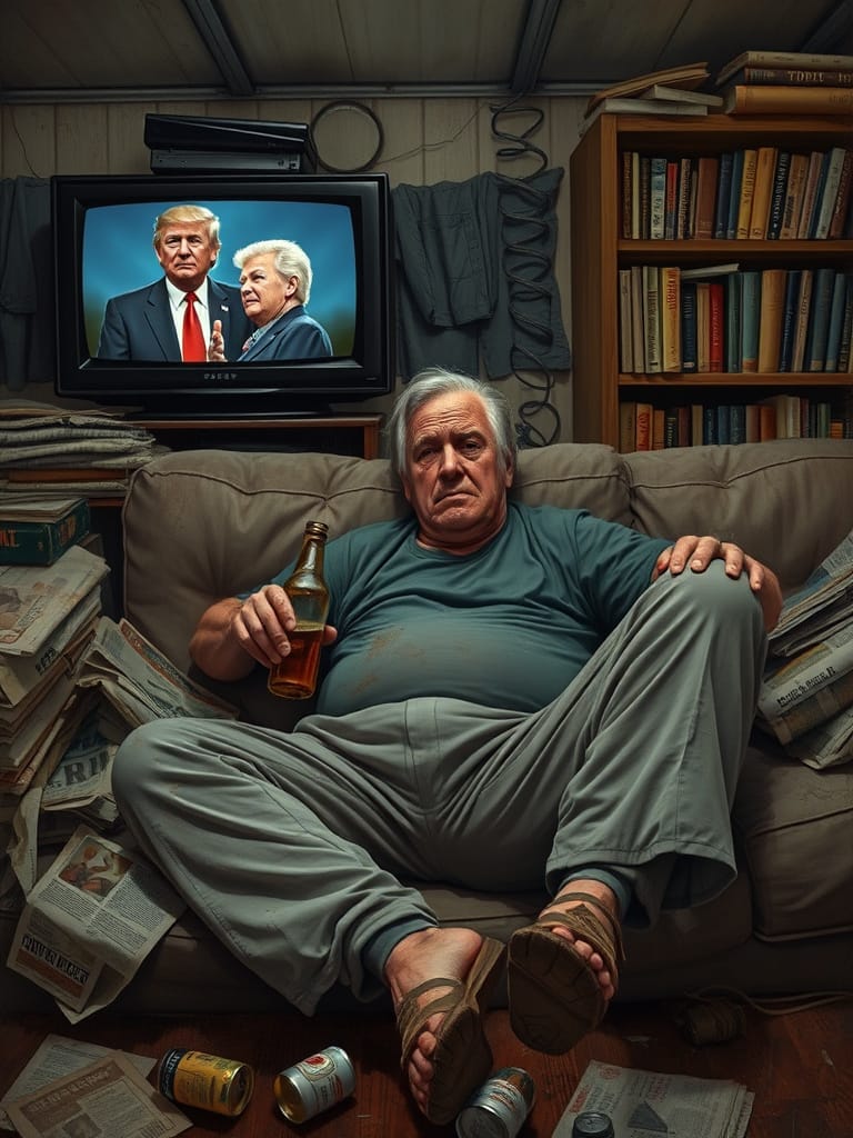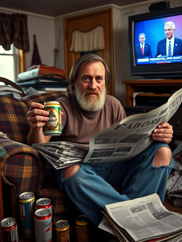 He had lived for quite some time now on a meager unemployment check, and had long since given up trying to find himself a job. But now, Floyd Wayne Vishniak[…] had become, in effect, a personal adviser to Governor Cozzano. It was a weighty responsibility. He was not going to sit around in his trailer drinking beer and acting like some kind of a buffoon. He was going to educate himself. He was going to start paying attention to the presidential campaign and learn about all of the candidates and the issues.