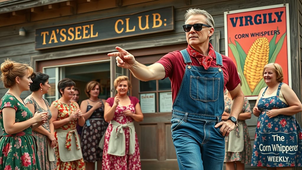 I’m not one to jump to conclusions, Tess. But I’ve heard whispers from the other women in town—rumors of “tassel clubs” and “corn whisperers” who detassel with unseemly flair. One even claimed she saw Virgil at the Casey’s General Store in denim overalls that were pressed.