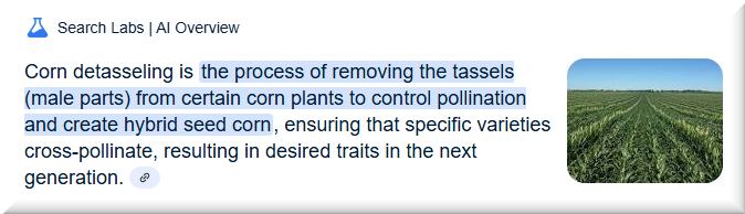 • This is done just before the tassels mature and release pollen, like catching a party crasher before he spikes the punch bowl.