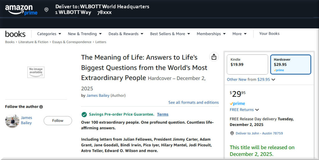 This article inspired the WLBOTT team. We had a few idle moments on this beautiful Central Texas spring morning, so we decided to tackle the meaning of life.