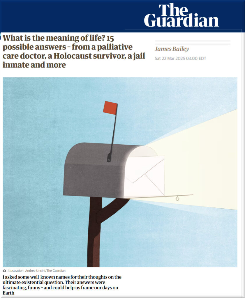 James Bailey set out to recreate an experiment from 1932 – write to a bunch of random, and not so random people. Ask them what they thought was the meaning of life, and compile the answers.