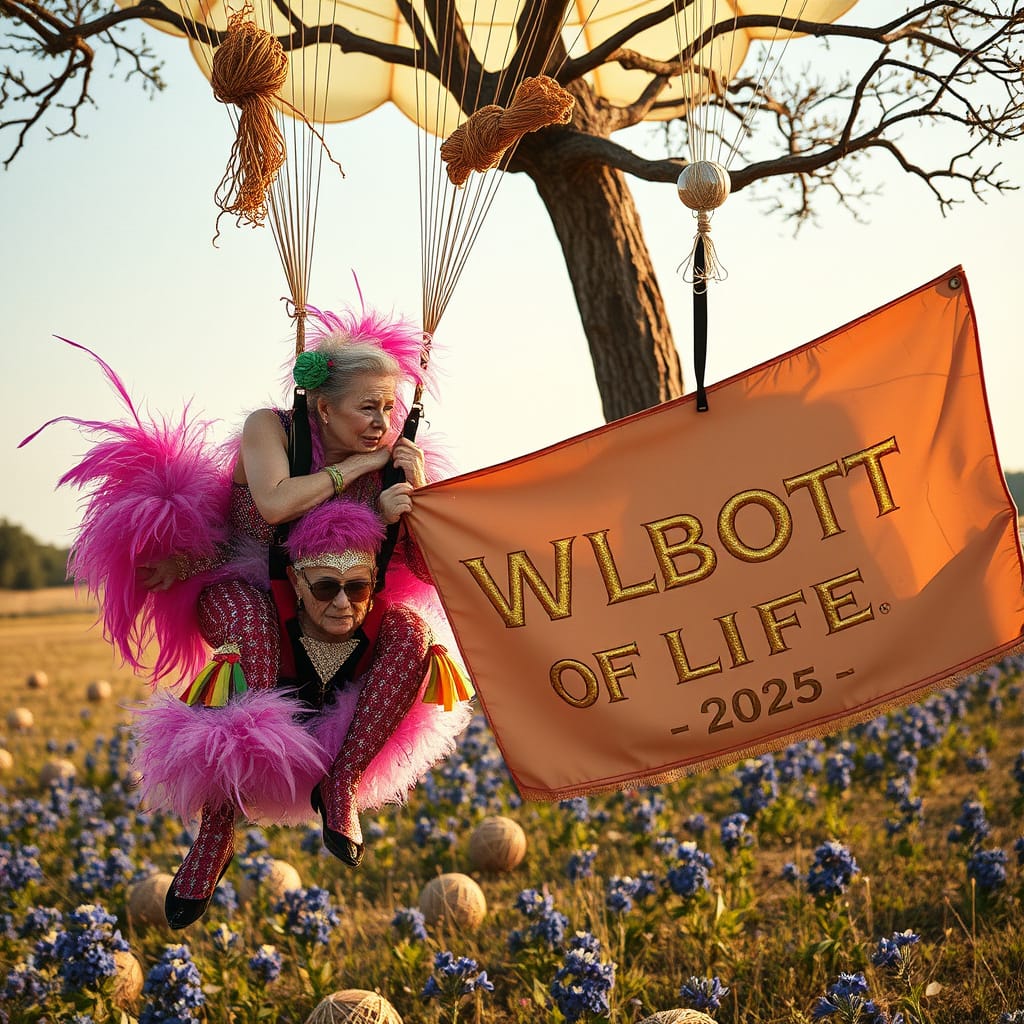 We contracted with the Association of Retired Las Vegas Showgirls to parachute in for the opening ceremonies.