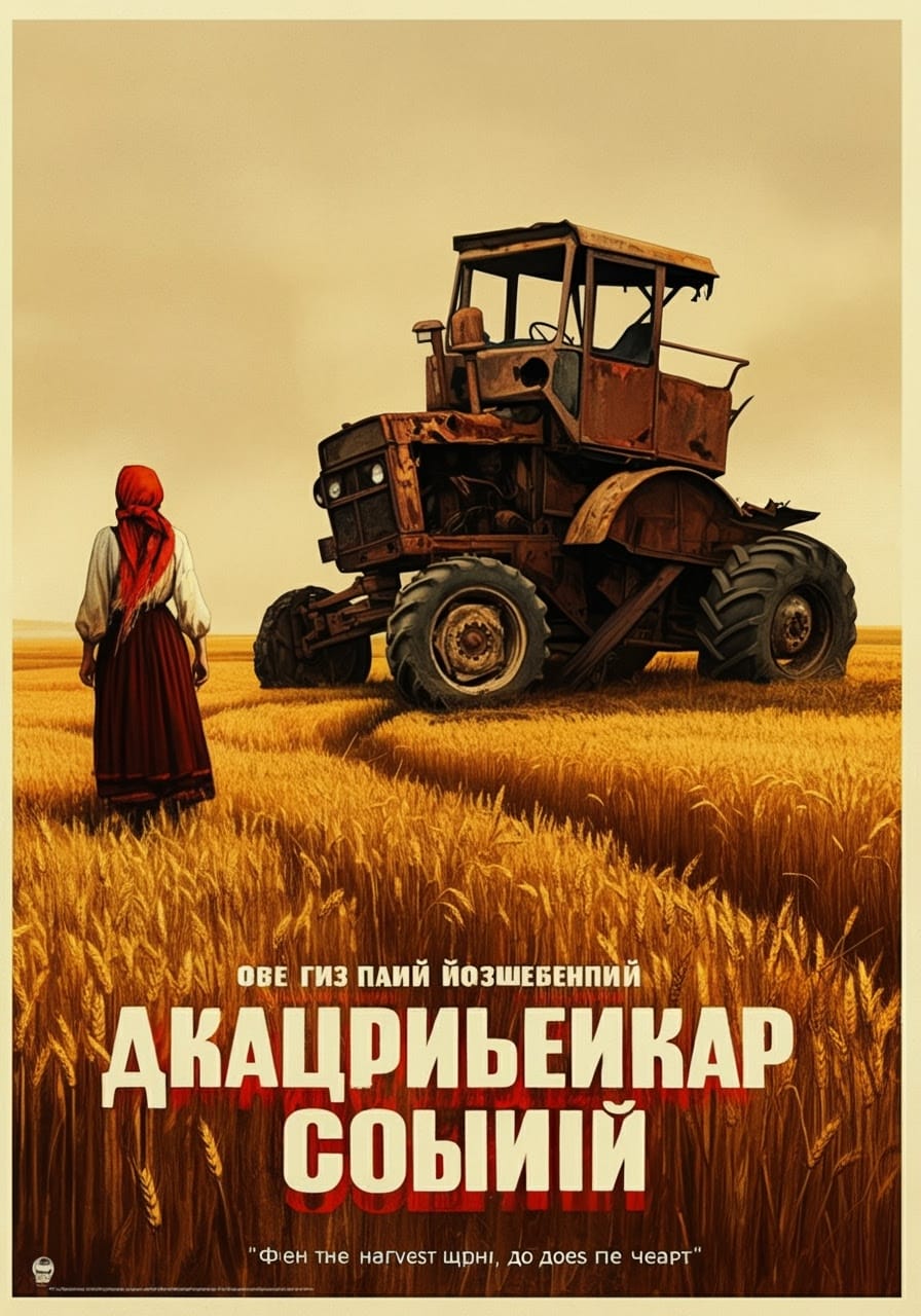Part romance, part horror. Oksana takes revenge on the tractor by joining a rival kolkhoz. The tractor, abandoned, rusts in symbolic agony.