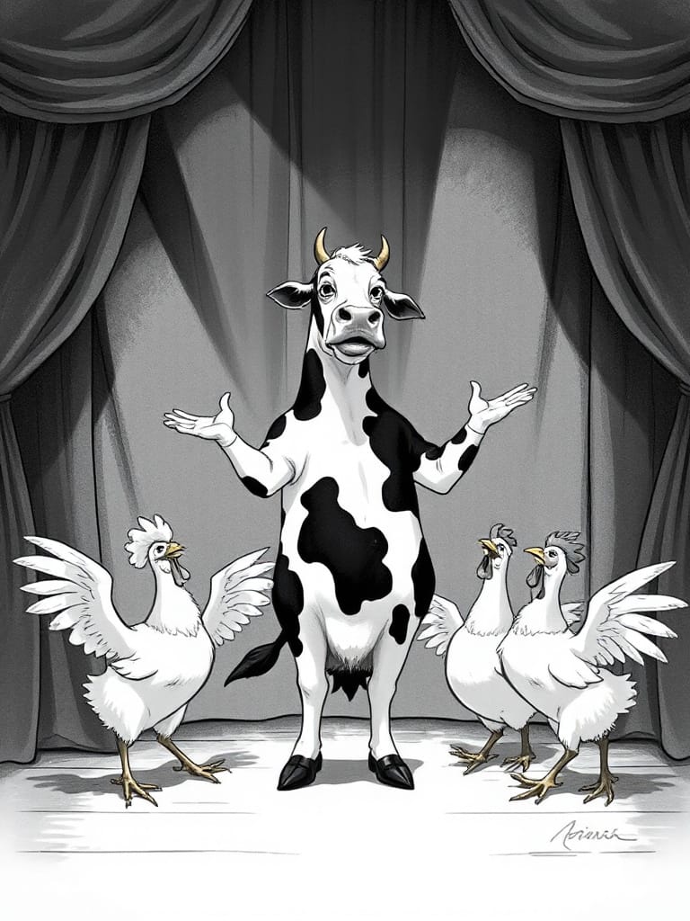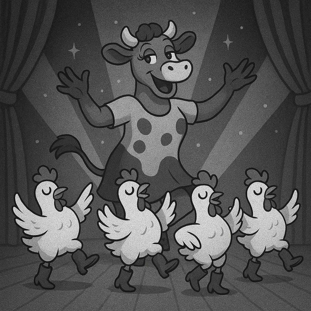 - A musical number: “Udder Pressure”, featuring interpretive dance by chickens in boots.