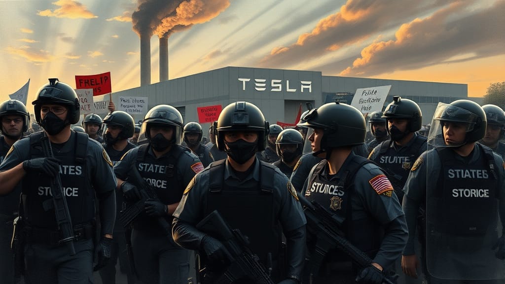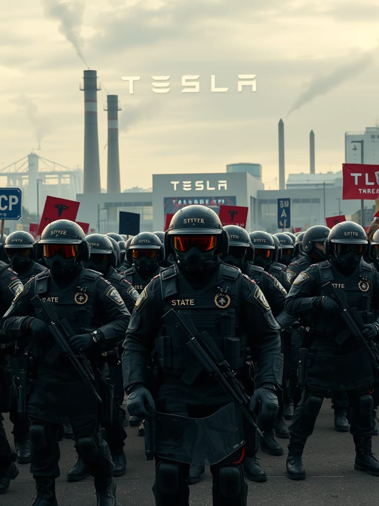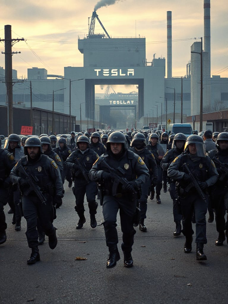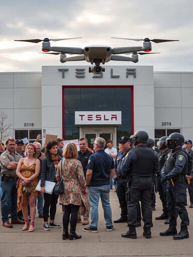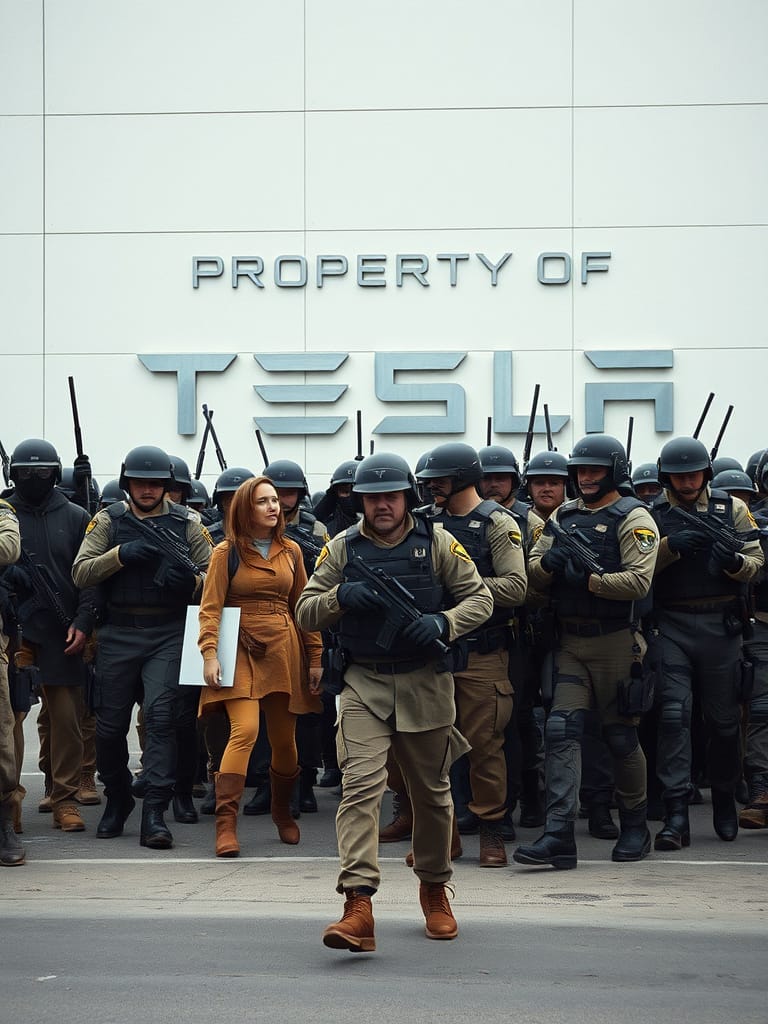 Just to be clear, corporations are people. Very wealthy people. Very powerful people. Much more people-ish than you or me. They have inalienable rights bestowed upon them by their Creator. The local authorities, in an effort to protect Tesla’s property rights, were hosting about 50 state troopers (as taxpayer expense). Using military-grade reconnaissance equipment (at taxpayer expense), they deployed a squadron of officers to intercept our act of civil disobedience (at taxpayer expense).