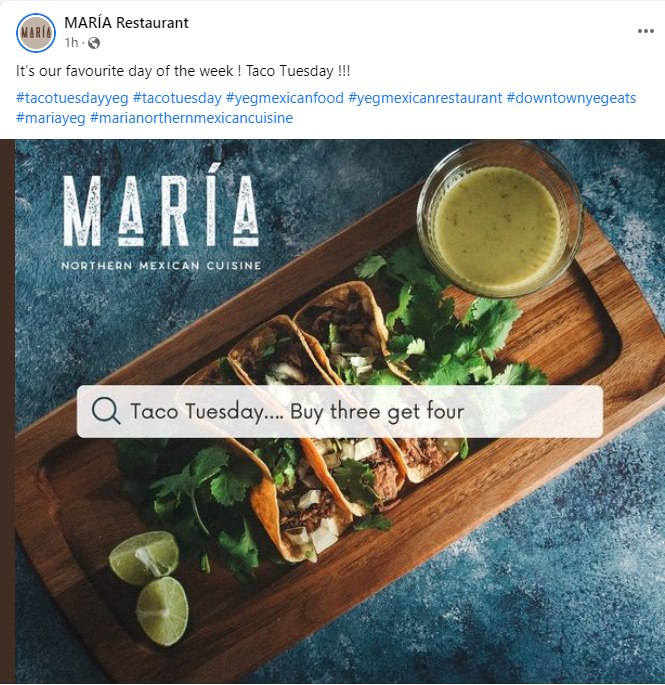 Maria’s has a great Facebook page and, it’s Taco Tuesday!