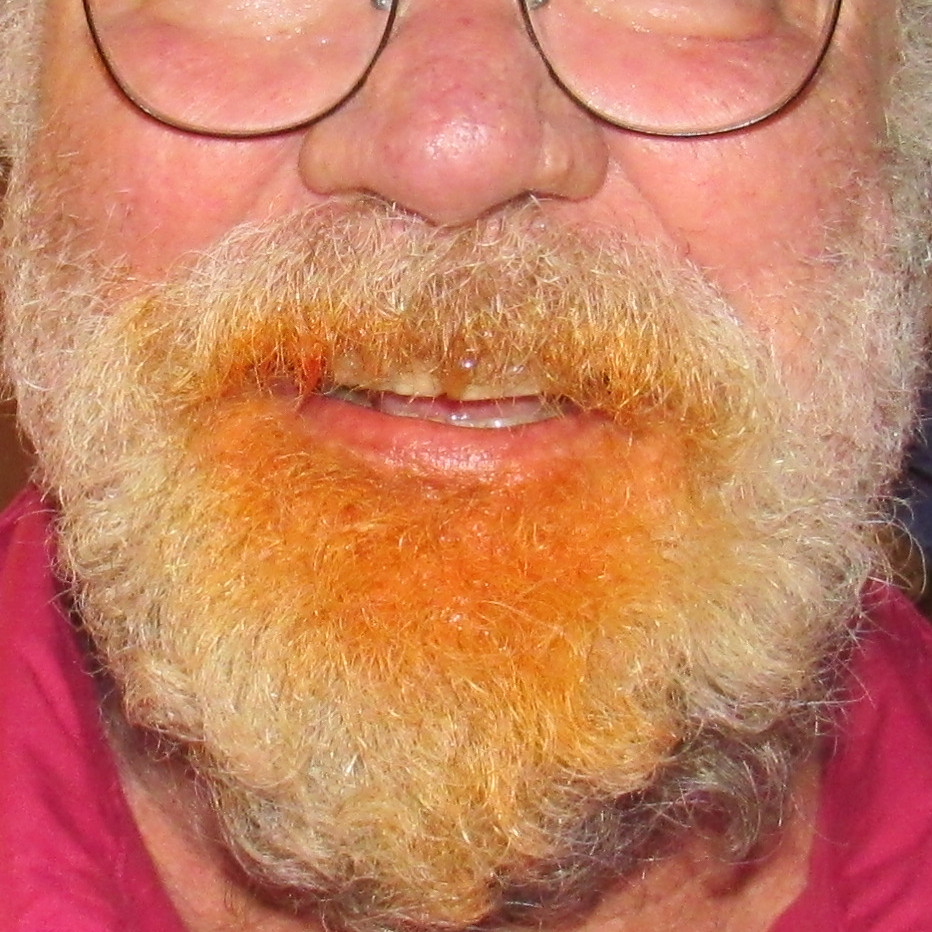 Dude – your beard is exactly the colour of Trump’s skin and hair during his first term. I suggest you now eat Kaeng Kari Curry (yellow) and borscht (red) and açaí pie (purple) to fill out the color pallet on your beard.