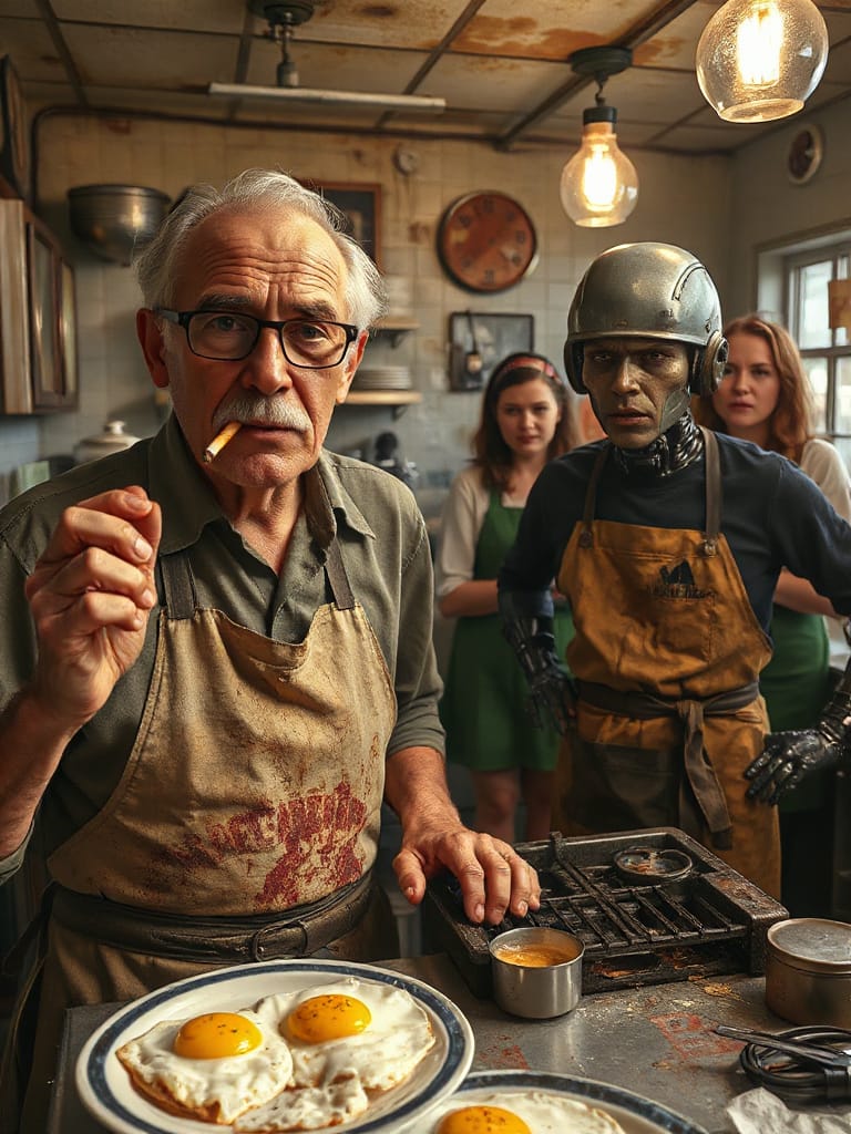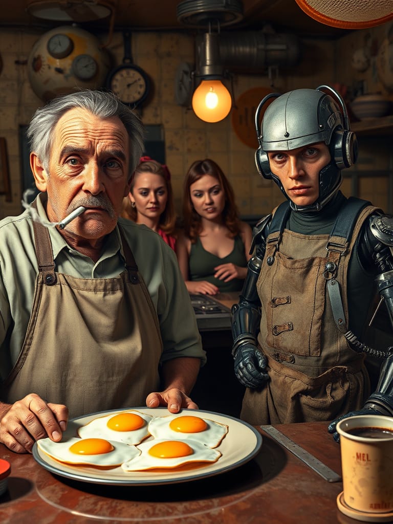 Today, Elder Z, I’m channeling a spirited cross between a wisecracking short-order cook and a kindly old fortune teller who reads the crumbs at the bottom of your biscuit tin. Think of me as your grizzled, apron-wearing, oracle of comfort food — with a side of cryptic wisdom and a dash of cosmic sass.