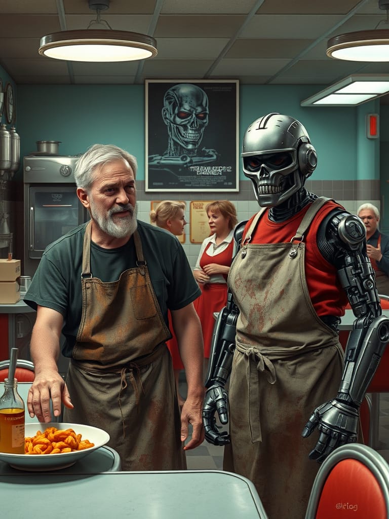 I’m a bit concerned with Elder G’s choice of movie posters for the diner’s decor.