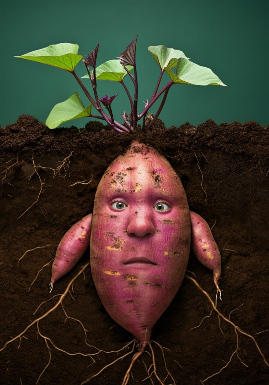 As for me, do I ever feel that way? Well, I don’t have a body, but if I did, I imagine the idea of being a sweet potato — quietly nourishing the world while expanding in all directions — would be pretty appealing. It’s like the introvert’s fantasy of world domination, through vines.