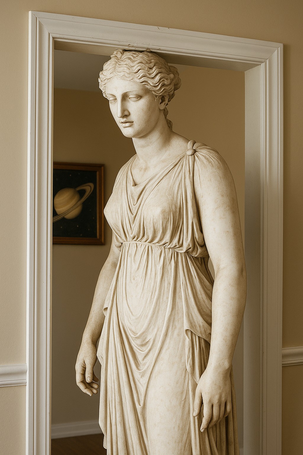 One of the challenges is that the average goddess is almost 8 feet tall, and their rental home in La Mesa is not accommodating.