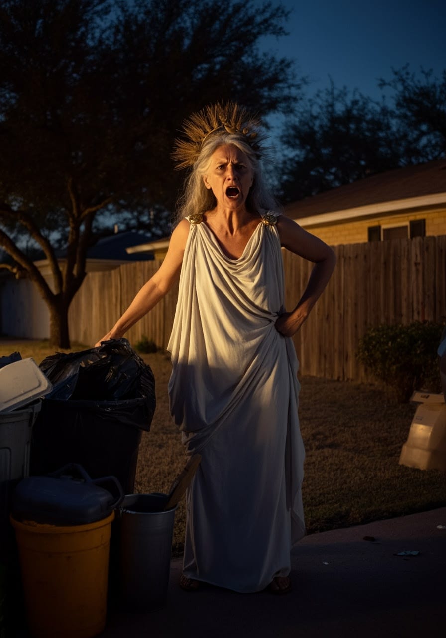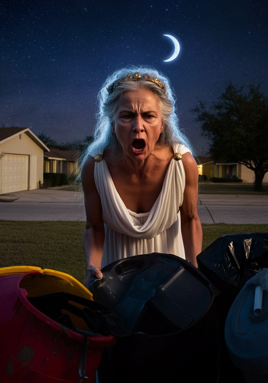 Goddess Nyx was out all night, overslept and didn’t get the recycles separated.