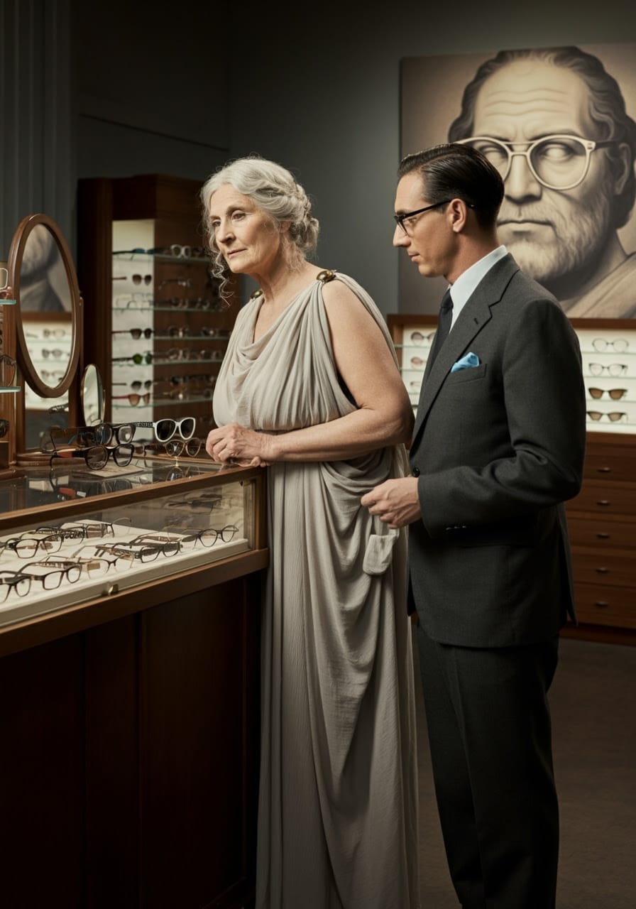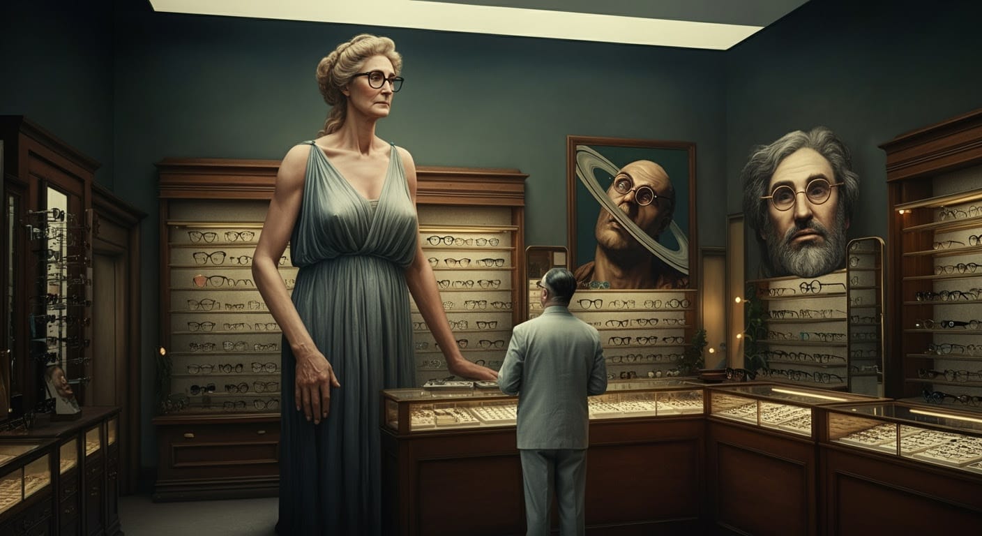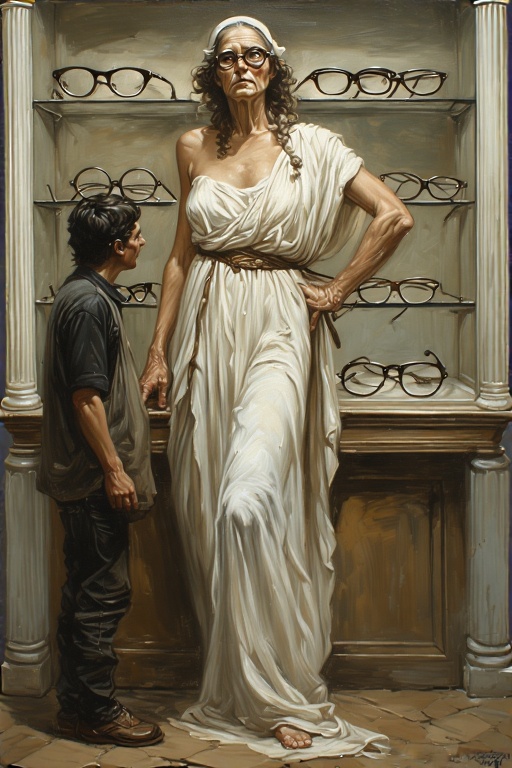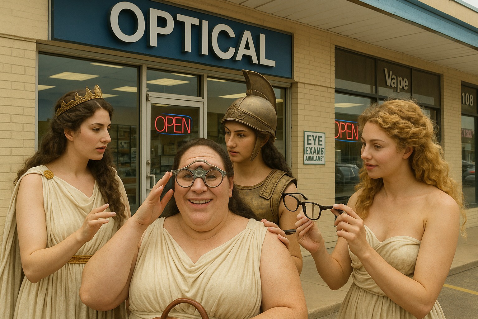 Ophthalmaia and Dotty Cyclopa are visiting the goddesses this week. Their optical needs are a bit special, so they accompanied the goddesses to Galileo Optical.