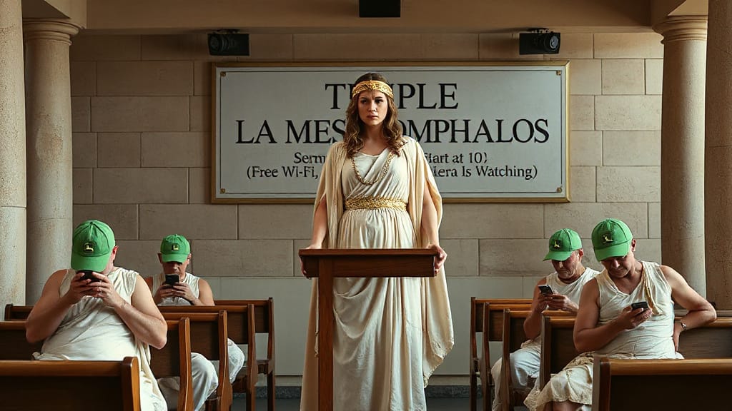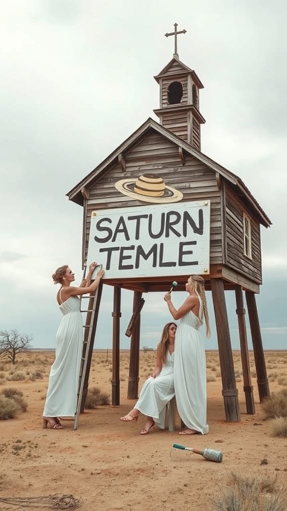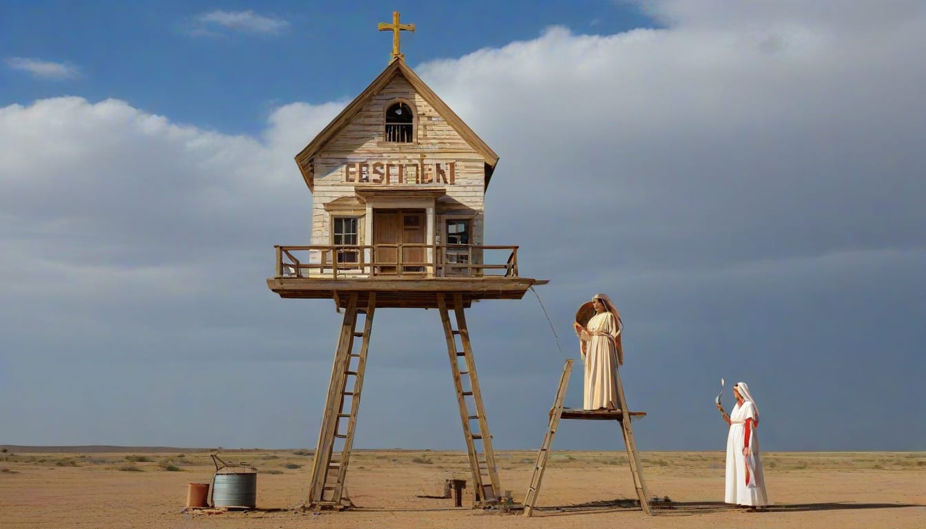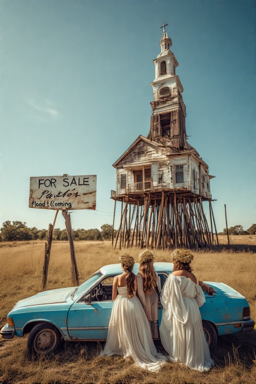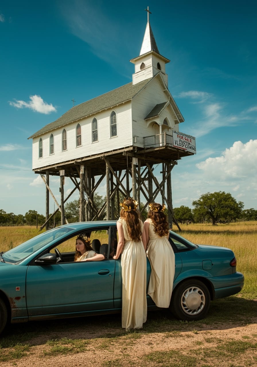 While driving around the suburbs of La Mesa, the goddesses noticed not one, but dozens of abandoned churches mounted on stilts. The elderly pastor, Pastor Wade B. Deep, believes a second flood, of biblical proportions, is coming soon. He became convinced of the wickedness of mankind after dealing with Spectrum customer support.