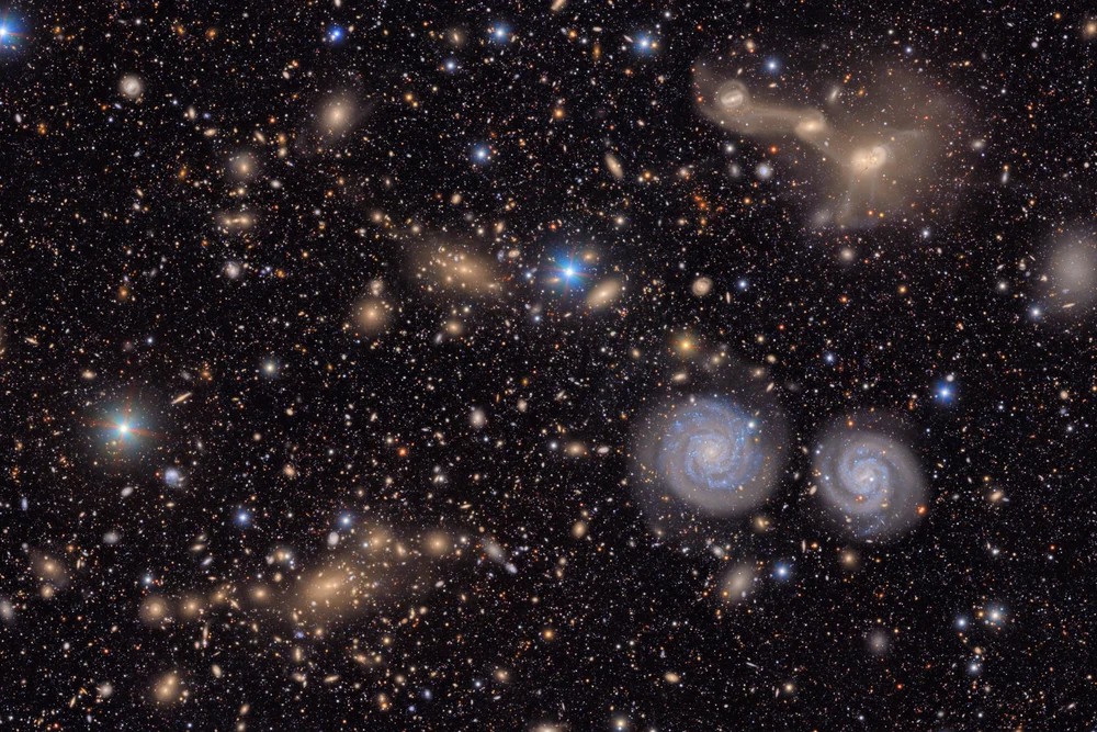 Stunning clarity on other sections of the Milky Way and distant galaxies, including a slice of the Virgo Cluster rich with spiral and merging galaxies, countless Milky Way stars, and even faint background galaxies