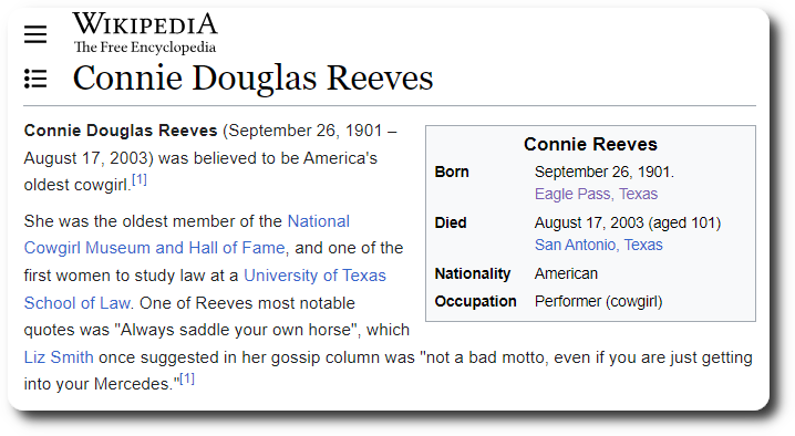 This is the most Texas thing you’ll read all day. Cowgirl Connie Reeves dies at the age of 101 after being thrown by her horse Dr. Pepper.