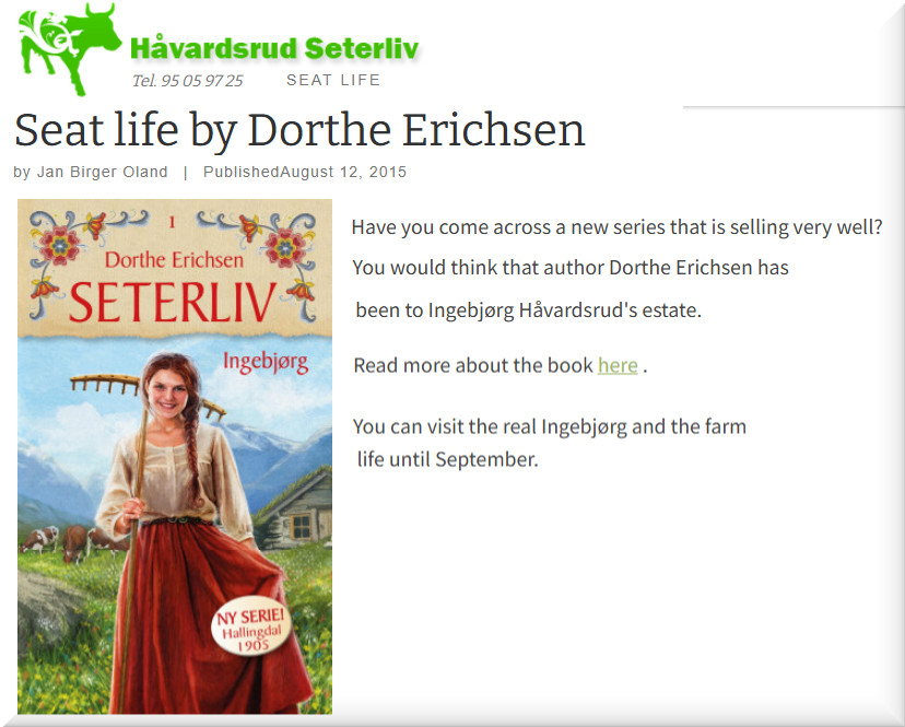 WLBOTT: G, yesterday we were talking about a nice Norwegian town called Rjukan. I came across a delightful farm nearby that gives children a farm experience, with cows, chickens, pigs and goats. The farm website references a series of books called “Seterliv” by author Dorthe Erichsen, but I can’t seem to find any information about the book series. Can you help?