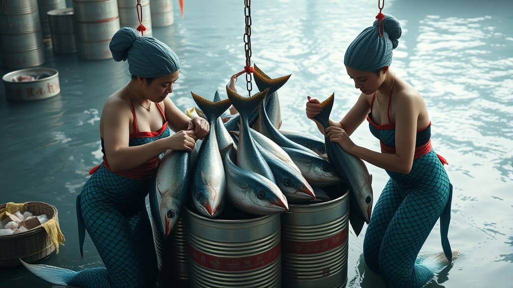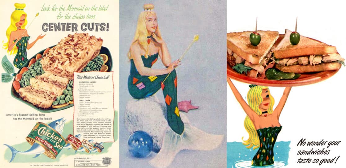 Their advertising mascot, Catalina, a blonde mermaid with a golden scepter, was introduced in the 1950s and soon became a familiar product icon. In her book The Longest Trek: My Tour of the Galaxy, Grace Lee Whitney is credited as being the original Chicken of the Sea Mermaid.