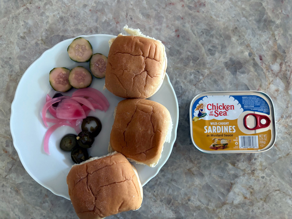 He started the day with a breakfast of sardines, onions, and jalapenos.