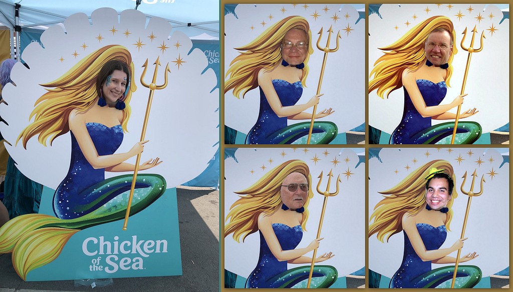 The Chicken of the Sea float was one of the first to make its entrance and boy, did it arrive! It was loud and had energetic music blasting, a mermaid with long red hair, and a sequined blue float for the team to cheer from. Chicken of the Sea has been around for over 110 years, so of course they were awesome Headline Sponsors of the Mermaid Parade! They debuted their mermaid Catalina’s new look on the float, and she her smile on the huge graphic, dazzled everyone around.