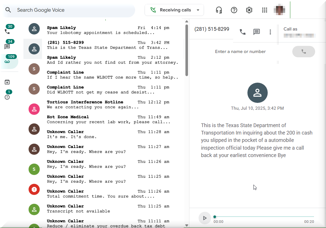 But when I got home from the inspection, this little jewel was in our WLBOTT corporate phone voice mail.