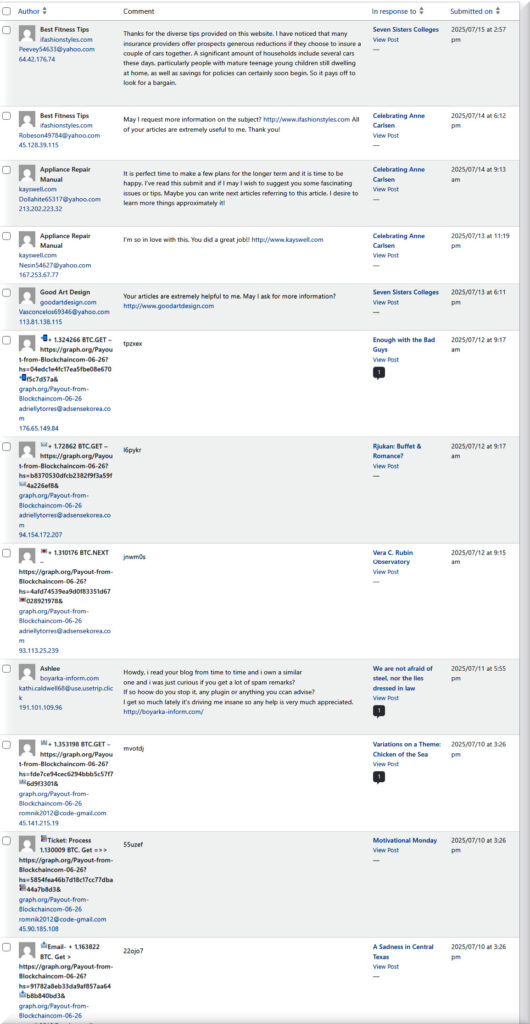 Good morning, G. So…. every morning I have to go through my email and filter out all the scammers, crooks, and thieves. I don’t think the average person realized how much of their time, money, and energy is spent building defenses against the bad guys. I think we should create a WLBOTT patron deity for the scammers, as a way to vent our frustration. Ideas?