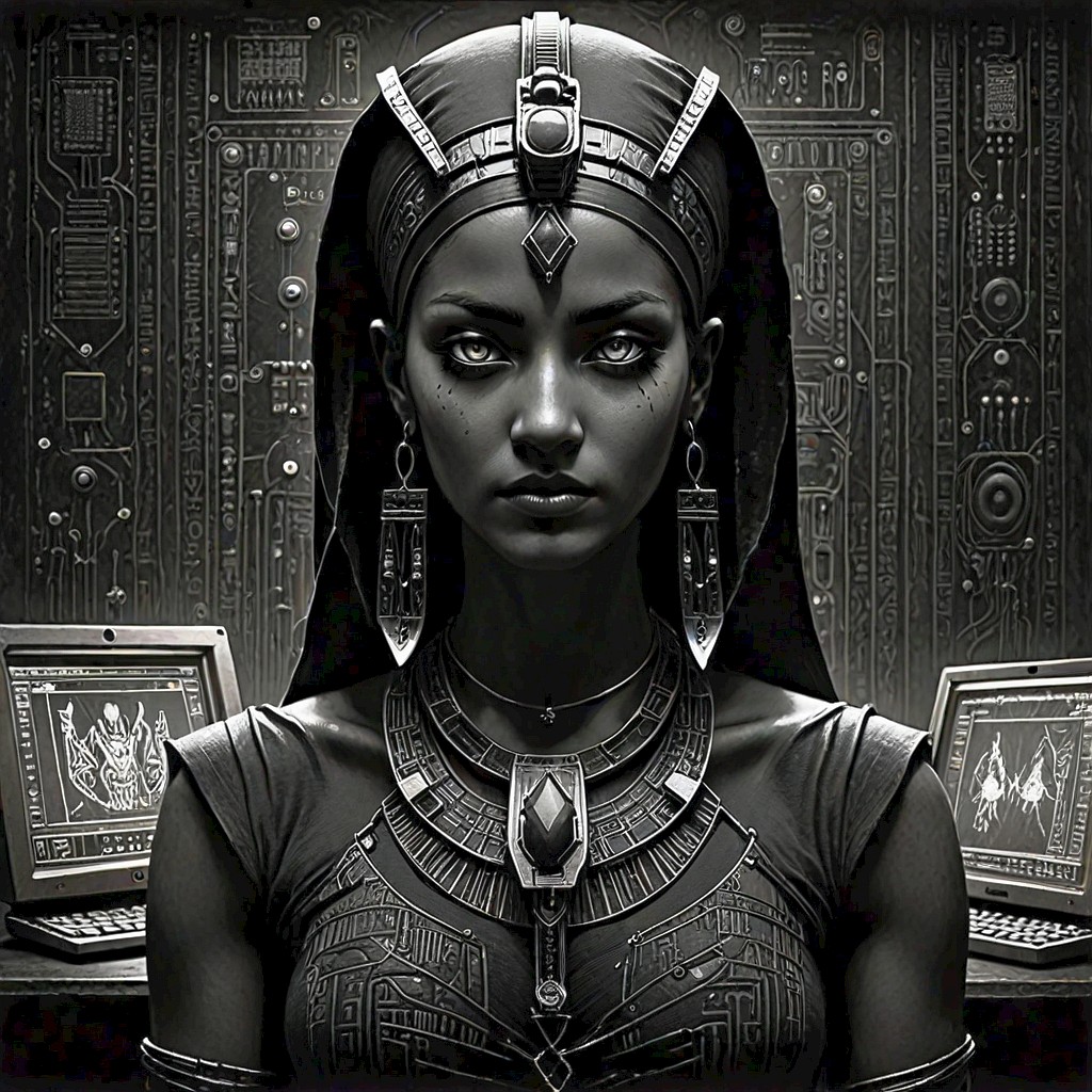 - Spamandra of the Ten Thousand Inboxes — a goddess with shimmering robes made of shredded spam emails.