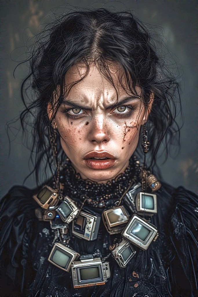 - Eyes that glow like pop-up ads at midnight.
