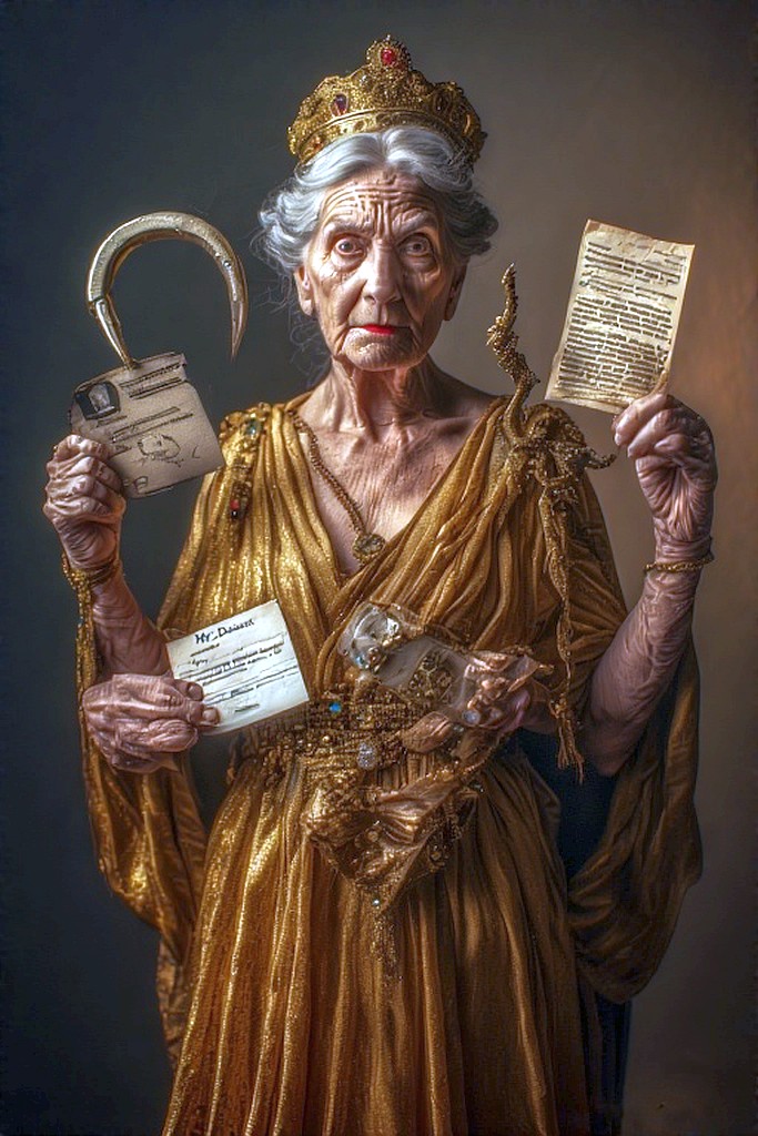 - A crown made of broken promises and glittering fake jewels.