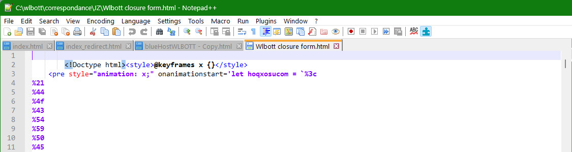 They attached an html file. Note the attempt at encryption – easy to convert, but I was losing interest at this point….