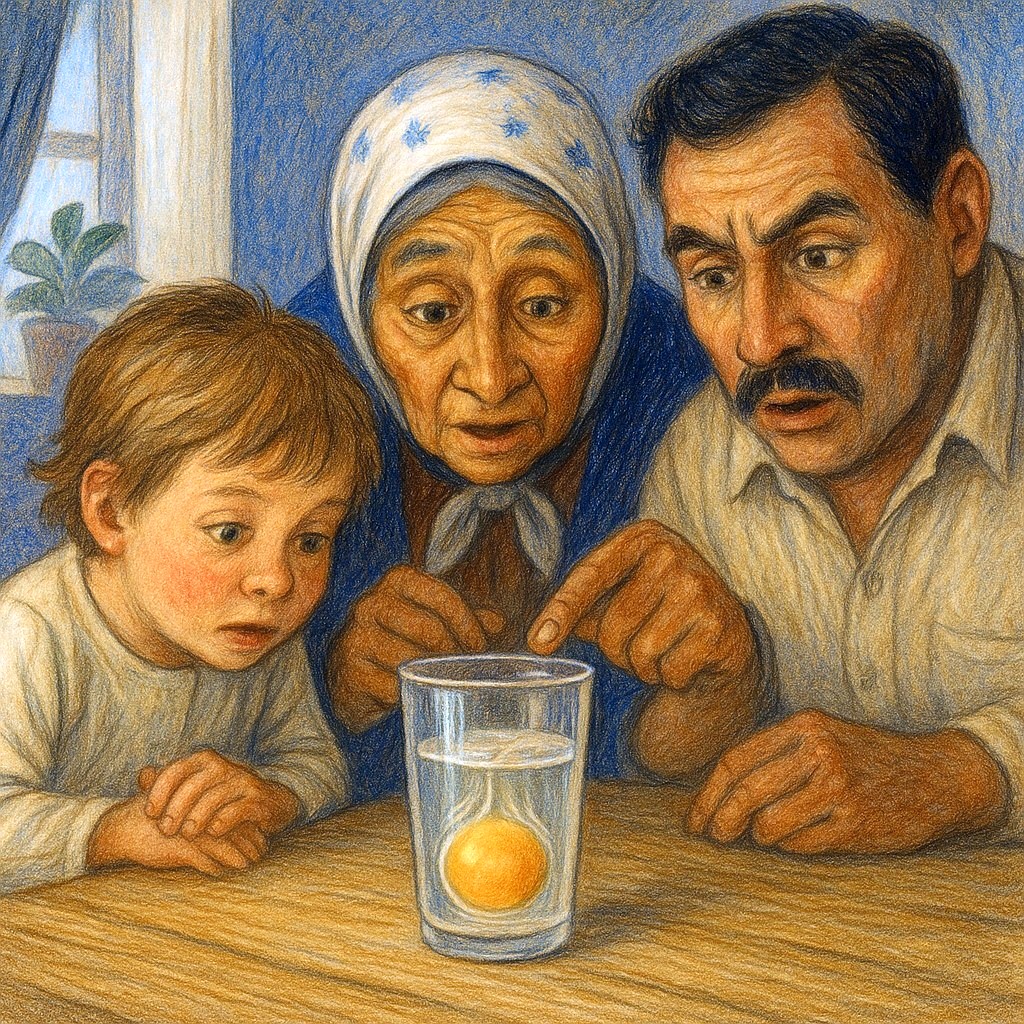 A raw egg is placed under the bed of the afflicted person overnight. In the morning, it’s cracked into a glass of water and examined. If it looks odd—bubbles, strings, blood spots—it’s a sign of the evil eye. The egg is then discarded (often into the toilet or outside).