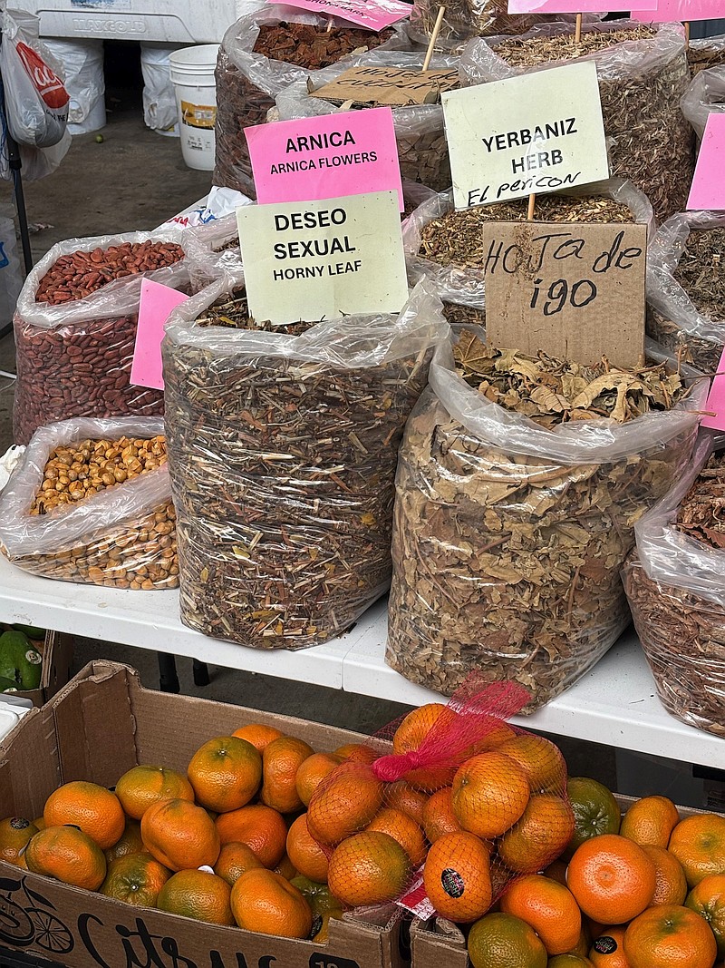 Gentle people – on our Ball of Twine Tour, we will be traveling to distant lands where doctors and Western pharmaceutical remedies for our ailments may not be readily available. [ed. note: this includes all of America.] I went to a Mexican market in Houston today and found a treasure trove of natural remedies for all of life’s challenges. Zoom in and read the placards for the herb’s name and curative properties. Exclusive use of these products will most certainly recommended by our new Health officials in Washington.
