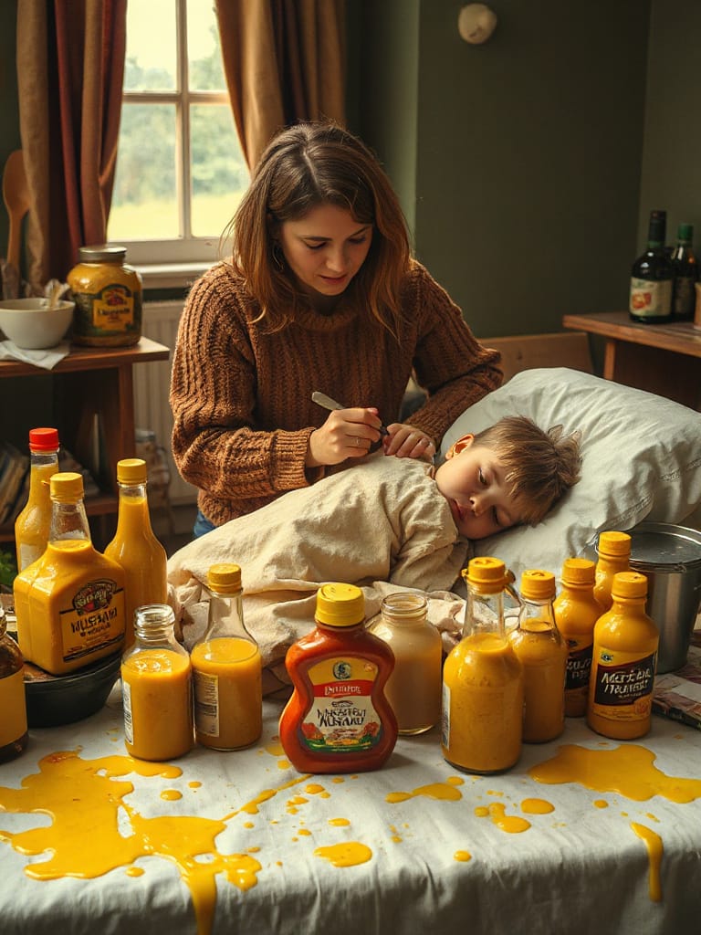 Cabbage leaf on the head to cool a fever (at least it felt nice).