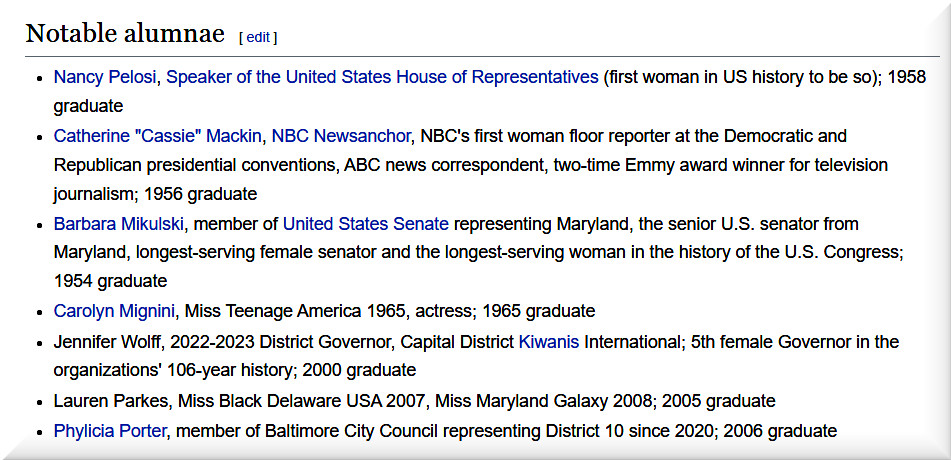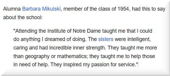 Barbara Mikulski attended the Institute of Notre Dame. Sadly,