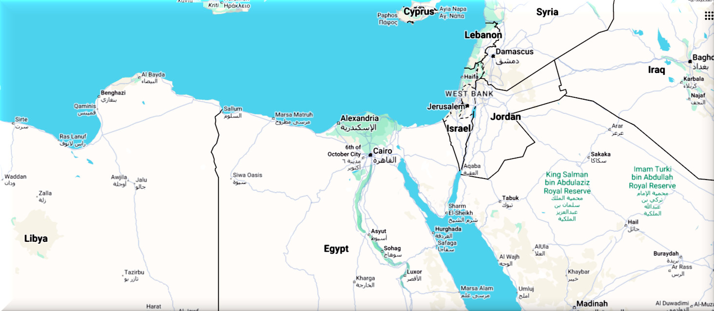 Note the dearth of street views once you cross into Egypt
