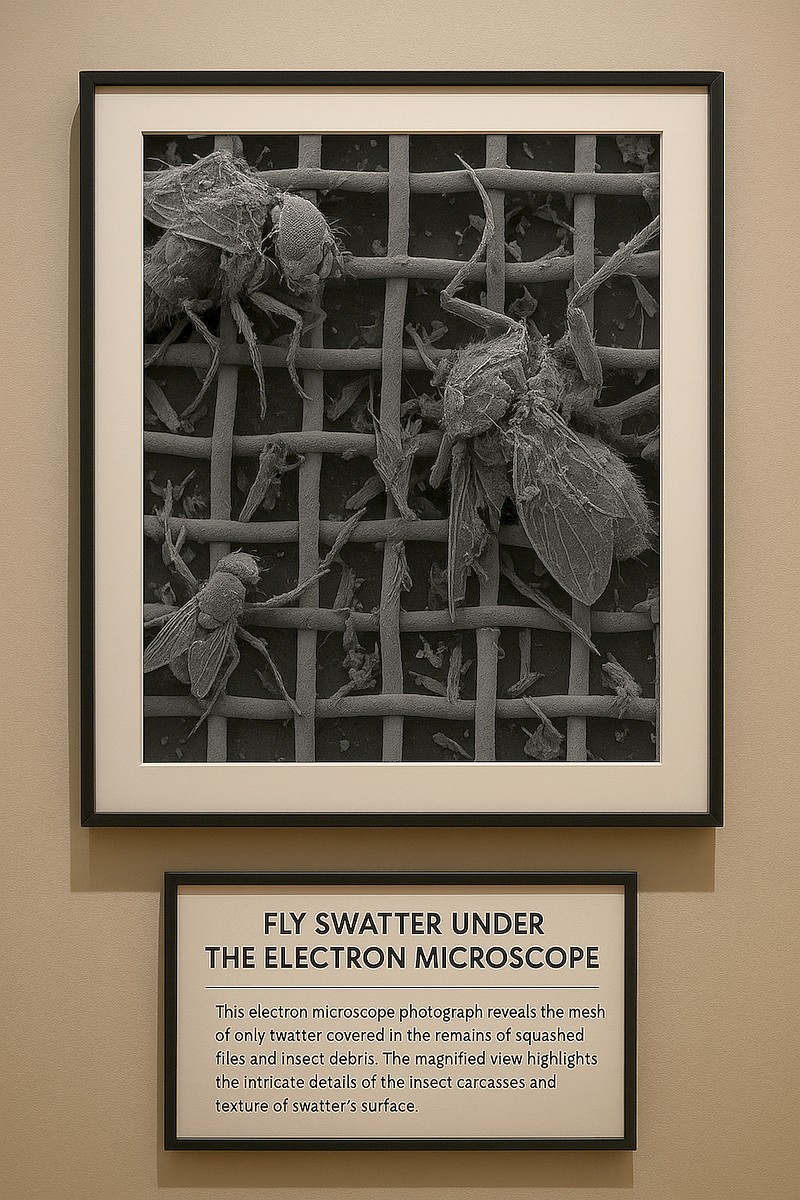 Think about it: every successful swat creates a Rorschach blot of insect innards across your wallpaper. Add the fact that flies themselves are little disease-ferries, and you’ve basically made abstract art with germs. WLBOTT could probably sell framed swatter art at auction under the label “Bio-Expressionism.”